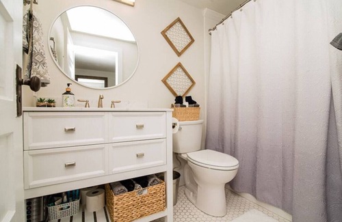-To prevent plumbing issues, please do not flush anything down the toilet besides toilet paper. There is a trashcan in each bathroom for other items. Flushable wipes are not permitted.