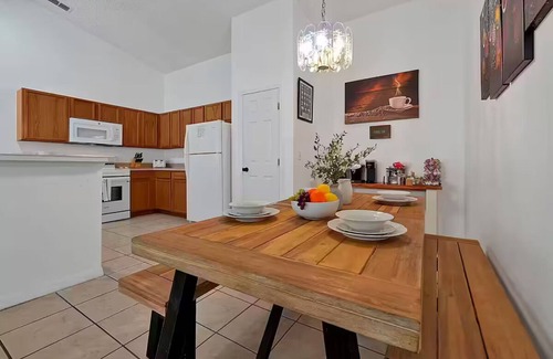 Welcome to your spacious, modern 4-bedroom, 3-bathroom home, nestled in a quiet and safe neighborhood just minutes away from the major theme parks! Perfect for families or groups of friends, this home comfortably accommodates up to 8 guests.