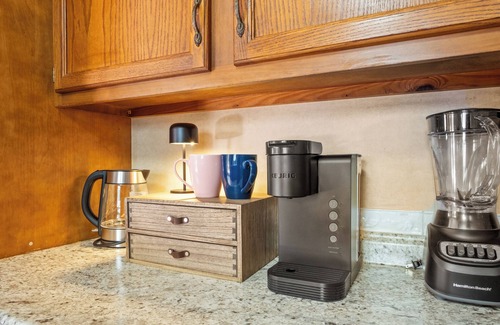 • Coffee maker with a hot water kettle for your morning brew