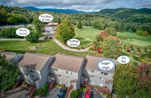 The townhome sits at 4100 feet elevation, right across the street from the Sugar Mountain Ski Resort, and is located on the first tee and putting green of the Sugar Mountain Golf Course. This public course is rated the #2 Executive course in the US! You will also be a very short walk to tennis courts, the Pro Shop with its Caddy Shack Cafe', hiking and mountain-biking. The Caddy Shack Cafe' offers "Grillin' and Chillin'" on Wednesday evenings during summer months, with outdoor live music (so close, you can hear it from your balcony) and dancing, too. In the winter months, you are steps from skiing, ice skating and snow tubing, which you can watch from your balcony, as well.