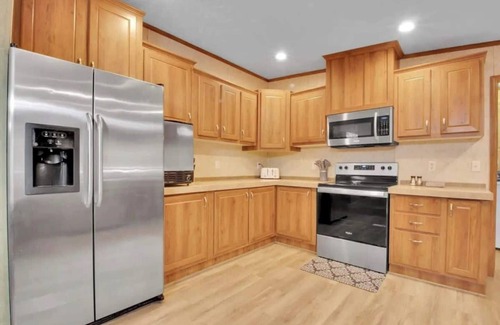 For your convenience, we also have a laundry area located near the kitchen, so you can easily take care of any laundry needs during your stay. In addition, our lodge features a variety of entertainment options, including pool, air hockey, and foosball. These amenities are sure to add to your vacation experience, providing hours of fun for guests of all ages.