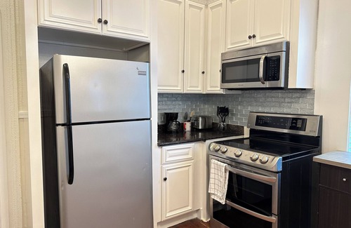 Experience historic charm in this spacious four-bedroom apartment located in Uptown, New Orleans. Featuring tall ceilings, century-old hardwood floors, and ample natural light, the apartment offers a cozy retreat. Enjoy stainless steel appliances, King Beds & tv's in every bedroom, and free street parking. Just 5 blocks from the St. Charles Parade Route, guests can easily access the streetcar or reach the French Quarter via Uber in just 8 mins! Recently updated Historic Triplex home! 1 of 3 unit