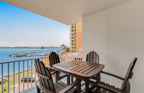 South Harbour 4F is the epitome of elegance and comfort. This gorgeously-decorated two-bedroom, two-bath condo offers incredible views of the Bay. With a king-size bed in the master bedroom, a queen-size bed in the guest bedroom, as well as a queen-size sleeper sofa in the living room, South Harbour 4F accommodates up to six guests comfortably. This lovely condo is adorned with elegant, beachy décor, comfortable furnishings and all amenities needed for that picture-perfect vacation you have been yearning for. Step into the inviting living room, boasting unique furnishings and décor, as well as a huge, mounted flat-screen television and DVD player combination. Cozy up with your loved ones for a movie night after a long day of soaking up the sun on the beach or exploring all that Pensacola Beach has to offer. Adjacent to the living room is the spacious master suite, boasting different shades of blue to complement the beachy décor. The large, mounted flat-screen television provides added entertainment during your stay. The master bedroom features an ensuite master bathroom, allowing you to relax in your own private oasis after a long day. The single vanity is surrounded by gorgeous granite countertops, and there is also a tub/shower combination. You will find the guest bedroom near the entrance, also boasting a large flat-screen television. The guest bathroom is adjacent to the guest bedroom and boasts a single vanity surrounded by a beautiful granite countertop, along with a capacious walk-in shower, for added comfort.