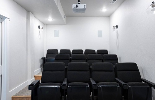 On the second level of the home, there is a sitting area with a wet bar and an electric fireplace. Gather in the pub-style lounge to chill after a long day outdoors. Four master bedrooms each include a private bathroom. Two additional bedrooms share a full bathroom. Two washers and two dryers in the laundry room accommodate large families.
