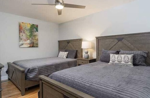 Escape to this secluded oasis in Asheville, located only 20 minutes from downtown and offering an array of amenities for an unforgettable getaway. This brand new, ultra-luxurious 5-bedroom, 5-bathroom home is beautifully decorated and equipped with plush beds, high-end stainless steel appliances, a seasonal outdoor pool, a new hot tub, a movie theater, and a game room with a pool table. Whether you're planning a large family reunion, a bachelor or bachelorette party, a corporate retreat, or wedding accommodations, this house has it all. Enjoy your morning coffee by the peaceful creek on the property or relax by the pool in the serene private yard. The home comfortably accommodates up to 14 guests and is just 15 minutes from Biltmore Estate.