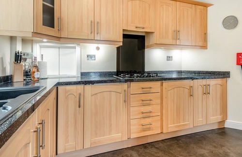 Kitchen: With electric oven, gas hob, microwave, fridge/freezer and dishwasher.