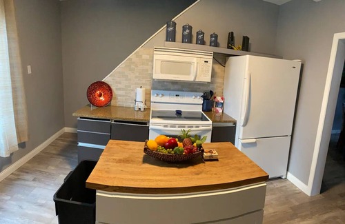 5 bedroom modern home. Full kitchen includes dishwasher, microwave, stove, fridge, keurig, everyday utensils and pans. Proper dining room and living room. 2 bedrooms have access to rooftop patio. 2 full bathrooms. House has a back yard and a front porch patio. Driving distance of Downtown Sheboygan local restaurants, bars, local shops, theater, beach, riverfront walk and parks.