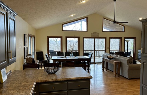 Looking for a place to relax and unwind? Looking for a place to boat, ski, and swim? The Haven is the perfect place for one or multiple families to come and enjoy the beauty of the outdoors! The home is nestled on 3 wooded acres on the end of a cul de sac so it is very private. You can sit out on the covered deck or patio and enjoy the beautiful year round lake view or relax by the fire at the fire pit that overlooks the lake or in the large hot tub. There is plenty of nature for the children to explore and safe areas for the children to run and play outside.