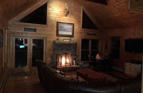 Beautiful log cabin located a short walk to Long Lake and a quick drive to Pleasant Mountain for skiing and winter fun. This place is unique and wonderfully maintained. Spacious cabin can sleep 8-10 people and has a completely finished basement. Outdoor fire pit with string lights make for a perfectly relaxing stay. The heated garage backs up to snowmobile trails.