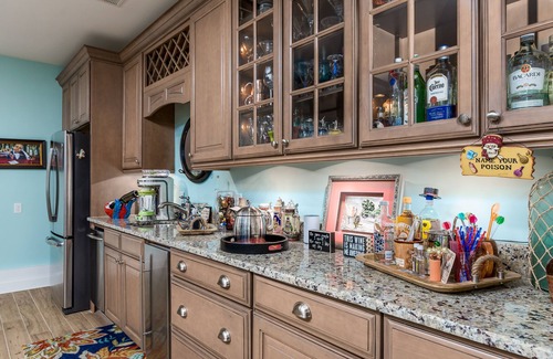 This beautiful home with a Private Pool and an Elevator is ready for your vacation rental stay! Built just a few years ago, this home has all of the features one could hope for. A ground level game room with pool table, TV area and wet bar will be the favorite spot for the kids, teens or kids at heart. This floor also has two double cots for extra sleeping as well as a half bathroom.