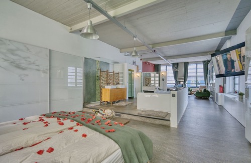 - On the top floor, a 110m2 Romantic LOFT with 4 meter high ceiling with complete American-style kitchen; you will be enjoy the hot tub while watching movies on a projector, then end your night in a king size 180cm bed.