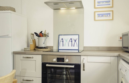 Modern well-equipped kitchen - oven, induction hob, fridge/freezer, microwave, washing machine, dishwasher.