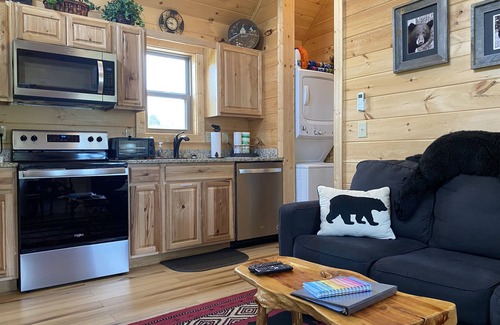 Adorable little cabin within a 2 minute walk to Deep Creek. Our cabin is small (400 sqft), but loaded with everything you need for a perfect couple's getaway in the North Carolina mountain town of Bryson City. Ideal for a romantic stay, our cabin has a queen sized, hand carved log bed in the master bedroom. If you want to bring the kids or extra guests, there's a sleeper sofa in the living room. We've got full sized kitchen appliances- refrigerator, stove top oven, microwave and dishwasher.