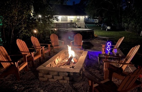 LaVida Vacations makes this choice easy for you. This Amazing spot is not like other property your looking at! Imagine this! Going to the #1 beach in the USA than coming back to a huge refreshing pool. Than after sitting in a massive wooded back yard with a huge fire pit and listening to great music and making s’mores! This is like your in the woods yet on the water where NO ONE will bother you. You can have the fire going late. The Cabin is built on top of the water hidden in the woods like youre camping. Any questions reach out if it shows booked our other locations may be available.
