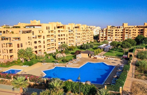 Apartment on the beachfront, in Cinnamon Island, Ayamonte, in the Albatros urbanization with garage, two bedrooms and air conditioning in the living room and terrace overlooking the sea. With gardens and two swimming pools and two paddle courts