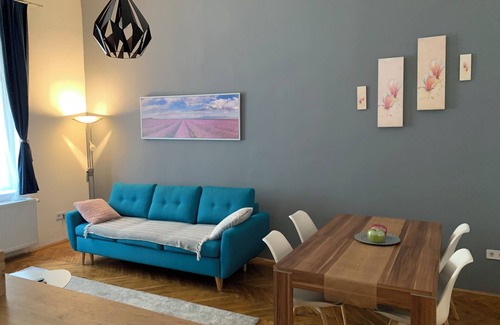 A newly renovated 53 sqm apartment in a residential building equipped with elevator in the heart of the city. This cozy apartment is located in the Buda side just a couple of minutes walk from the Danube. Close to the S-Bahn station to SZIGET festival. Best choice for people who like the proximity of the main sights and the city center, but do not want to stay in the area of noisy bars and clubs. This two room apartment has a livingroom and a bedroom and an entire kitchen, a bathroom and a separate toilet. It is equipped with free WiFi, Flat screen TV, Hairdryer, 1 Double bed, 1 Sofa Bed. No washing machine, but there is a self service laundry in 10 min walk distance. Tram nr. 6 runs in front of the building 24/7 which goes through the entire city center.
