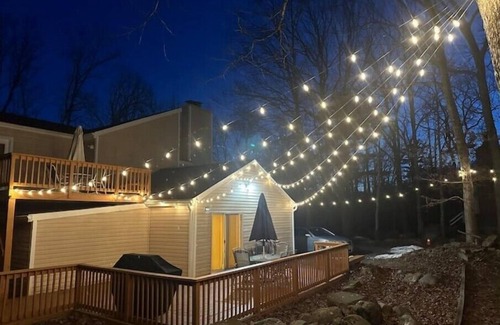 This beautiful 5 bedroom (with all new mattresses!) + bonus office with queen bed / 4 bathroom house in the Poconos Mountains is located on a cul-de-sac with a backyard that opens up to a forest preserve, which provides an amazing view! While the house feels secluded, it is less than 15 minute drive to stores like Giant and Target. You are able to ski, snow tube, or golf just a short distance away! Also, it has many activities and attractions within 15 minutes, including Camelback Mountain, Delaware Water Gap, Kalahari, Shawnee Mountain, Great Wolf Lodge, Premium Outlets shopping, roller skating, skydiving, white water rafting, golf courses, breweries and wineries.