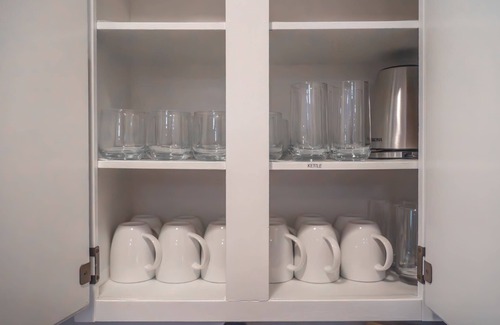 The upstairs living area is bright and welcoming, with plenty of seating to relax or gather. The dining area seats 8 comfortably, making it easy to enjoy meals together. The fully equipped kitchen provides everything you need to prepare home-cooked meals.
