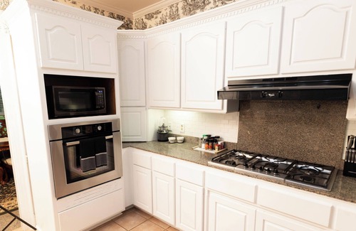 • Kitchen: full-sized fridge, oven, stove, microwave, dishwasher, Keurig, cookware, breakfast nook