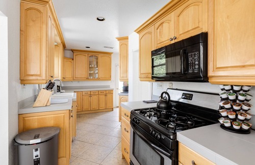 Forget your worries in this spacious and serene space. Amazing views from the pool of San Jacinto Peak. Enjoy time in the hot tub while watching the sunset over the mountains. At night you can see the twinkling tram lights gliding up to the 10,000 foot peak. Only a 5 min drive to downtown, 10 min to the airport, and 11 min to the tram station. Joshua Tree is only a 45 min drive away for a day trip to one of the most beautiful and unique national parks. TOT permit # 9194 City ID # 1437 The highlight of the property is the oversized pool with steps for easy entry to the shallow end or take a cannonball into the 8 feet deep end. Attached is an in-ground spa for those cooler winter nights. Warm up on the spacious deck and sunbathe under the desert sun. The yard also includes a 4-hole putting green to sharpen your skills (putters and balls on site). The property is walled on all sides with large plants for your privacy and security! Cool down inside the estate which has 6 separate bedrooms. The main house features a primary suite with sitting room, bathroom, king bed and private and back patio access. Also in the main house are 2 bedrooms each with a queen bed which share a bathroom. At the other end of the main home is ensuite with a small kitchen, bedroom with full/double sized bed and private bathroom. The center of the main home contains the main living room, full kitchen, and dining room which seats all 12 guests. Behind the main house is a relaxing lighted patio with gas fire pit. Using a separate entrance, the Casita (little house) features a living room, full kitchen, and 2 bedrooms with a shared bathroom. The main bedroom features a king bed and the other features a full/double sized bed with single/twin bunk above it as well as a stand alone single/twin bed. Kitchens are fully stocked for all your needs. Televisions throughout the estate feature Rokus and HD antennas for local stations. The home can fit a maximum of 12 people per Palm Springs ordnance and is strictly enforced. Outdoor Music is prohibited per Palm Springs Ordnance and is strictly enforced. You'll have private access to the entire property except the garage area and owner's closet. Please communicate through the app with any questions or concerns during your stay. We are happy to be there for you to make sure you have an enjoyable stay. Executive Errands can be available in person but there may be additional charges if you request extra services from them. Feel free to drive in with space for 3 vehicles in the driveway. Additions vehicles may park on the street. Neighborhood is a quiet, estate centric neighborhood with convenient access to downtown and the highway. The home can fit a maximum of 12 people per Palm Springs ordnance and is strictly enforced. Outdoor Music is prohibited per Palm Springs Ordnance and is strictly enforced. Pool heat utility bills are extremely expensive in Palm Springs. Our rate is in line with most rentals at $125 per night. The spa heat is complimentary. We can heat the pool for a portion of the time during your stay at your request.