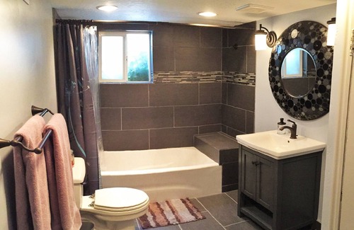 This is a classic tudor with an art deco interior located in the East Avenues District of Salt Lake City. This home features a small vineyard on the property that is part of Millcreek Estates Winery! Located less than a mile from the center of downtown Salt Lake City, this home is in the perfect location for those who want to be downtown, yet stay in a real house instead of a cramped condo. There is a handmade oak spiral staircase that leads to the huge master en-suite bedroom that takes up the whole top floor. The entire home was just completely restored & renovated and has a modern, open feel while retaining its early 20th century classic appeal. There is free fiber optic ultra high-speed WiFi in the home. Free off-street parking with a level 2 electric car charging plug - parking for 3 vehicles total.