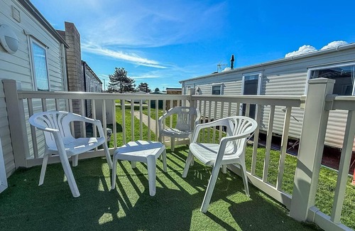 6 berth caravan with decking at Naze Marine Holiday Park ref 17071P is located in Walton on the Naze. 6 berth caravan with decking at Naze Marine Holiday Park ref 17071P provides accommodation, featuring Balcony/Terrace, Security/Safety, Fireplace/Heating, among other amenities. This House features Balcony/Terrace, Security/Safety, Fireplace/Heating, to make your stay a comfortable one.