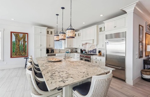 6 Terra Bella Trace, Hilton Head Island is nestled between the salt marsh and the Atlantic Ocean, 6 Terra Bella Trace is a beach lover's paradise. This outstanding property features 6 bedrooms and 8 bathrooms. The chef's kitchen boasts top-of-the-line Wolf and Sub-Zero appliances and an oversized island with wrap-around seating. The open-concept living and dining room are perfect for your large group. Enjoy the generously sized pool deck for dining, lounging, and swimming. This home also features a media room with a large TV and game table, 2 laundry rooms, an elevator, and a private pool. Plus, don't miss the rooftop deck with panoramic views of the Atlantic Ocean and Folly Creek Salt Marsh. Every reservation includes up to $1000 in FREE activities, ensuring an unforgettable experience for all guests. Whether you're seeking relaxation or adventure, 6 Terra Bella Trace offers the ultimate vacation getaway.