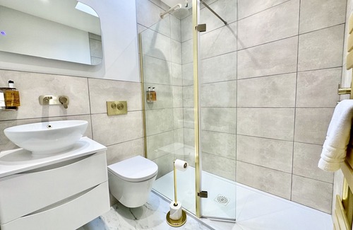 6 The Feather has free parking and free WI FI through out, a wonderful newly furnished one bedroom mews house, furnished to a high standard in the heart of Ripon. Step inside and you will not be disappointed, a well equipped kitchen with all mod cons for you to enjoy your self catering stay, great dining area wonderful sized sofas to relax on along with smart tv, downstairs WC. Continue up the stairs to the bedroom with double bed dressing area lots of storage, on the landing is the large shower room toilet and sink. Luxury linen and towels are provided along with luxury soaps free WI FI and free parking , contactless check in and check out.