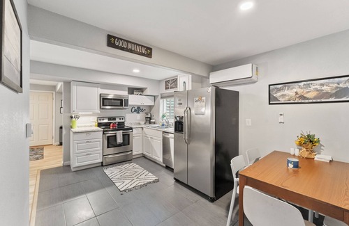 This cute, classic, charming, fully independent basement level unit offers a comfortable, simplified interior, everything you need (and nothing you don’t). Enter through a fully independent separate entrance located from the side yard and down the small flight of stairs. After parking on the street and entering with the key-code provided at check-in, you’ll be greeted with a spacious and functional open-floor plan concept. This main living and space is open, bright, and inviting with a lot of extra room for games or movie nights. A table for 4 sits in it's own dedicated space in the kitchen; off to the side of the front door, an alcove containing a desk and work light makes for a practical, out-of-the-way workspace to get some work done during your stay (if you must)!