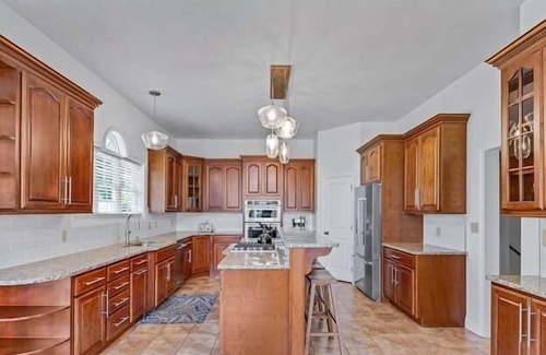 Updated gourmet kitchen: Whip up delicious meals with ease in the fully equipped gourmet kitchen featuring new appliances.