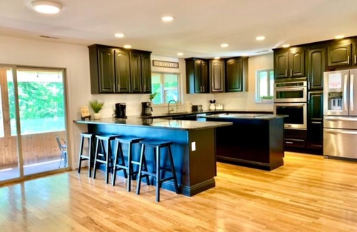 The outdoor area has recently been updated with a brand new pool liner, heat pump, non inflatable pool floats, outdoor bar and outdoor TV!