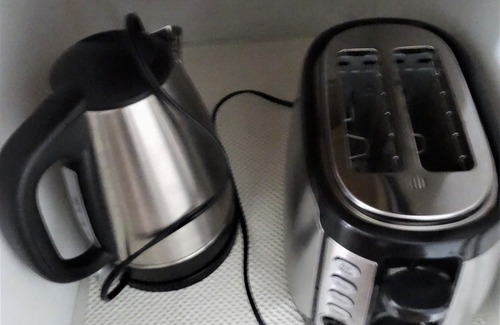 - Fully equipped kitchen with a refrigerator, microwave, toaster, kettle, 4 cups drip coffee maker and one cup keurig coffee maker, cookware, pepper and salt, sugar and cream, napkins, paper towels, trash bags, etc.