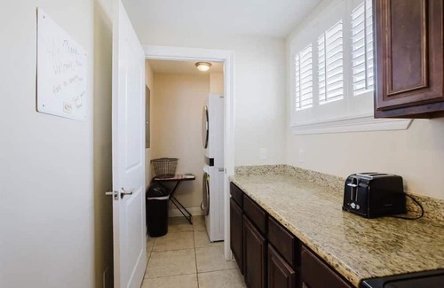 Relax and unwind in the comfort of your own home away from home. The living room is equipped with plush sofas and a flat-screen TV for your entertainment. The fully equipped kitchen has everything you need to whip up a delicious meal, or you can dine out at one of the nearby restaurants.