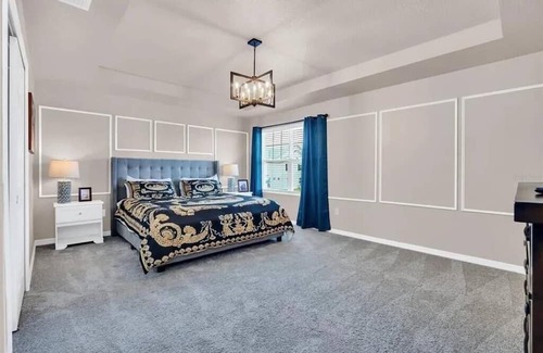 Step into a realm of luxury and comfort as this brand-new abode welcomes you with open arms. Fully furnished to make you feel like royalty, each room is a unique adventure, themed after your favorite Disney characters. Whether you're relaxing in Star Wars-themed living/dining area, playing Foosball, Air Hockey, and Skee-Ball in the Avatar game room, snoozing in Captain America's cozy nook or soaking in the magical vibes of Elsa's suite, every corner sparkles with charm.