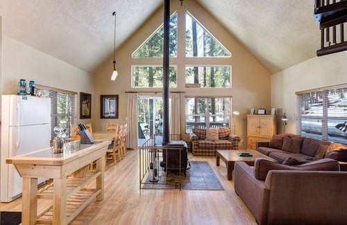 Wawona Chalet is a cozy 2 Bedroom, 1 Bathroom, home on the south side of the Merced River. The home sleeps up to 6 guests. The kitchen is fully equipped with all cooking and dining needs. The living room includes a wood stove (firewood provided in season), flat-screen satellite TV, WiFi, and central air conditioning and heating. There is also a washer and dryer. Enjoy the peace and quiet of lounging on the private deck while preparing your favorite meal on the gas BBQ. Dine under the stars at this secluded and peaceful cabin surrounded by the majesty of Yosemite! No pets allowed. "EV Charging Station available within five miles of the cabin"