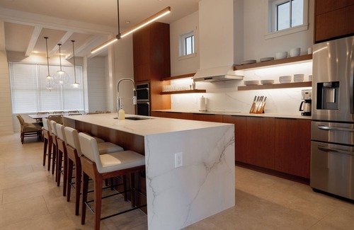 This 8-bedroom, 9-bathroom home features a fully equipped kitchen, private and heated pool, Coyote gas grill, a spacious sectional sofa with ample seating for everyone, and a dining area designed to comfortably accommodate your entire group. Unlike traditional vacation homes, our team offers consistently high standards of service, 24/7 security, cleanliness, and amenities, ensuring a worry-free experience from start to finish.