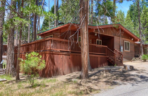 Shehadey's Retreat is a 2 bedroom, 2 bathroom home that sleeps up to 6 guests. The fully-equipped kitchen has all cooking and dining essentials. The living room has a fireplace (wood provided in season), satellite TV, and WiFi. The large, private deck has a gas BBQ, tables, chairs, and a picnic table, perfect for outdoor grilling & dining while enjoying the Yosemite views. No pets are allowed. This cabin has air conditioning. "EV Charging Station available within five miles of the cabin"