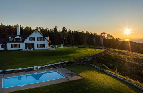 Vaste domaine au charme incroyable offrant une vue imprenable sur le fleuve Saint-Laurent. 5 chambres confortables, chacune avec sa salle de bain privée. Grande cuisine rustique équipée, parfaite pour partager des repas en famille ou entre amis. Salon chaleureux avec poutres apparentes et foyer, idéal pour se détendre après une journée d?exploration. Piscine creusée chauffée pour des moments de détente, peu importe la saison. Terrain de tennis privé pour les amateurs de sport. Vaste domaine offrant intimité et tranquillité, entouré de la beauté naturelle de Charlevoix. Terrasse avec mobilier extérieur et vue panoramique. Proche des attraits touristiques : sentiers de randonnée, activités nautiques, galeries d?art et boutiques locales.