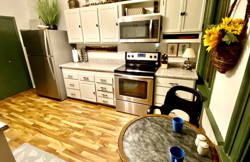 Main Level: Savor a morning cup of coffee on The Hitch – our front porch. Minnie’s Kitchen is equipped with almost every culinary tool you could ever need during your visit, including a dishwasher. There are two grocery stores in town: Custer County Market, two blocks east & across the street, pick up some buffalo meat for grilled burgers on the McKinley Patio, grill and tools are ready...just add the sizzle. For a more formal dinner at home, choose a bottle of wine at Lynn’s Dakota Mart on the eastern edge of downtown. If you’re in the mood for a meal out, enjoy one of Custer's many fine restaurants.