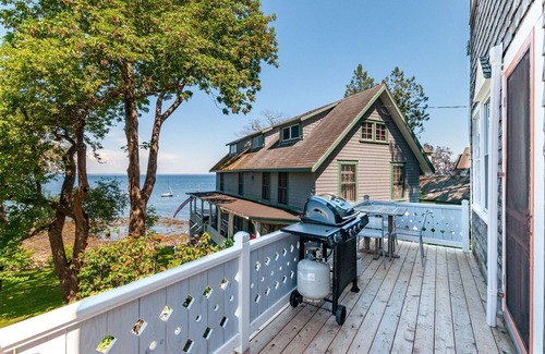 This former General Store (built in 1905) was renovated into its current state as a cottage in 1981. It is now considered one of the prime rental properties in Bayside. Entering the cottage you are greeted by comfortable furnishings, original artwork, a well equipped kitchen and a full bath. At the rear of the cottage through the screen door to the outside is a cozy deck with seating, a small table, and gas grill. The deck faces the ocean with wonderful water views and views of all the Bayside activity. Upstairs are two comfortable, bright queen bedrooms, one with beautiful water views: the master bedroomincludes a new (for 2020), ensuite bath with large tiled shower; there is also a shared bathroom (with new, enlarged tile shower for 2020) with laundry, and on the third floor two bright, cozy bedrooms with skylights, each with two twin beds. With plenty of room in a lovely summer setting, A.C. Hopkins has been a crowd pleaser year after year