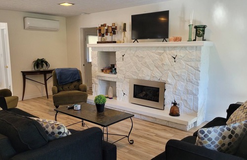 This charming 3 bedroom bunglow cotage with a 3 pc bath, large open concept kitchen with breakfast bar, spacious living room witht the dining room located in the back sunroom with overszie windows, which leads out to the back dek, yard or fire-pit for entertaining. Living rooms boasts a brick mantle gas fireplace, LG Smart tv with Netflix and Fire TV, wireless internet along with corner office knook. Kitchen comes fully furnished with large and small appliances, cookware, flatware, spices and a French press and grinder, washer & dryer and A/C for those hot summer days.Outdoor features Napleon grill on the back deck as well as outdoor dining table and funiture, Muskoka-style chairs and games for the kids!
