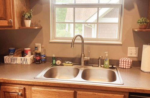 This lovely home is located in a beautiful neighborhood 2 miles from the Parkway near downtown Sevierville and 9 miles from Dollywood, just 3.2 miles from Sevierville Convention Center and Soaky Mountain. 2 miles from the fairgrounds. Up to 8 guests max can stay comfortably with 2 king bedrooms and 2 queen couch beds in the large living room. There are 2 bathrooms, one with a tub and shower combo and one with a large shower with a handrail. Large living room with ample seating and a beautiful see-through gas fireplace. There are 4 TVs with cable, including ESPN and Roku streaming. If you wish to cook, there is a full kitchen with an electric stove, cooktop, microwave, dishwasher, toaster, coffee maker and refrigerator with ice and water. There is also a gas grill on the deck for your convenience. The dining room has a large farm table and is next to the fireplace. Have your coffee on the beautiful tranquil decks or sunroom and enjoy the lush trees. Sit out on the deck and enjoy the gas firepit. There is also a game room with a reclining couch to watch tv. Pac Man arcade game, ping pong table, lego table with legos to build and some games and toys are also provided. Game room has a window a/c and plug in electric heater. There is a seasonal pool and towels are provided. Many activities and restaurants located in our beautiful area as well as the Smoky Mountains.!!