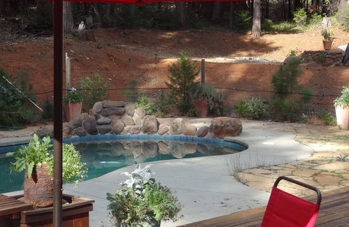 This secluded home is nestled in the forest of the Sierra foothills inside the Tahoe National Forest. Conveniently located to local wedding venues and a jump to the Western States Trail. This spacious home is close to many popular venues in and around Foresthill, California, the epicenter of northern California outdoor living. We aim to provide everything you'll need for a comfortable and clean experience on 3 acres of spacious, forested residence. Each of the bedrooms are extra large making for comfortable quarters. Please read the detailed descriptions and view our gallery to imagine your stay here! Kitchen offers a variety of spices and a generously stocked pantry with the essentials for the chef. Formal/informal place settings. Linens, towels, soap, etc. all included. Laundry room and ample storage. Guests must provide and prepare their own meals. Just bring yourself and be ready to relax by the 40' lap pool! Note that pool is sun-heated only (not solar), and may be brisk depending on time of year and weather conditions. On-site massage services may available with advanced, paid appointment. Very clean home. PLEASE READ THIS LISTING AND RENTAL AGREEMENT PRIOR TO BOOKING. THANK YOU! Note that the small cottage on our 3 acres of property during your stay MAY OR MAY NOT be occupied by me. If home, I am rarely seen or heard as I aim for a private experience for our guests.