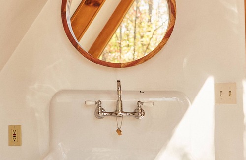 A highlight of the cabin is the upstairs bathroom, featured in Condé Nast, Houzz and West Elm, it's a Pinterest dream come true. Come take a soak in our beautiful soaker tub among the trees. 2 hours from NYC.