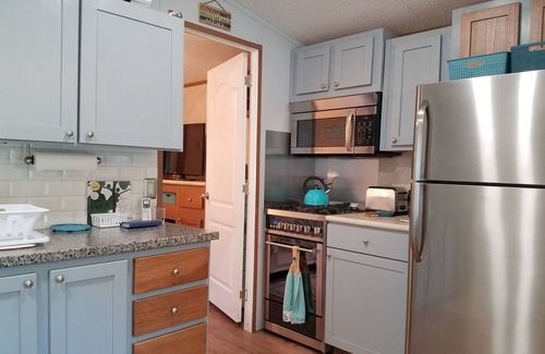Amenities include complimentary wireless internet access, 2 cable TVs, DVD. Central heat and air conditioning (mini split system) and ceiling fans. The kitchen includes a gas stove. Standard and Keurig coffee maker. Washer and Dryer.