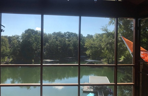 Located in the middle section of Tims Ford Lake in Cline Ridge. Cabin lake home with quite cove in your back yard, that's loaded with windows and is perfect for large family gatherings. Screened in deck on the upper lever and cover deck on the lower level with a nice swinging bench to enjoy the views. Cabin includes 4 bedrooms and an additional sleeping area in the rec room, 2 full baths, one with a rain shower. Only steps down to the water and private boat dock with boat and Jet Ski lift. Bring your boat and/or Jet Ski or rent from one of the marinas on the lake.