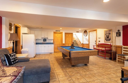 The ground floor is where the fun truly begins in Diagon Alley! Challenge your family to a game of pool or arcade classics, or enjoy board games and comfy seating. The nearby kitchenette—dubbed The Leaky Cauldron—makes it easy to grab snacks or refreshments. This level also features The Room of Requirement, a master bedroom with a private bathroom, offering the ultimate convenience.