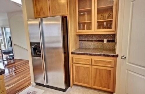 No Pets Allowed. This Marine Terrace beauty sits on Lampton street just steps from the oceanfront Lampton Park and beach access. The house is beautifully decorated with your comfort in mind. The fully furnished kitchen features granite counters and stainless steel appliances... also an ocean view from the kitchen window. Ocean views also from the living room and Master bedroom. There are two gas fireplaces for those cool evening, one in the living room and one in the Master bedroom. In addition to the bedrooms there is a separate office just in case work calls during your stay. If you are looking for comfort, beautiful views and relaxation. this is the place. Exterior security cameras monitor the full exterior of home.