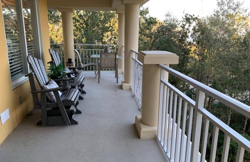 "No Bridge, No Problem" is the motto of this little island. You'll take a ferry to get to Daufuskie Island which takes a little planning, but it means this island has remained secluded and beautiful. No crowds, no shopping centers, and very few paved roads -- a golf cart is all you need -- and we include a 4 person cart with your rental price (saving you $60+ per night and the hassle of booking one yourself). Enjoy spectacular sunrises and sunsets, miles of uncrowded beaches for walking, gentle waves for playing in the ocean, and a large pool just steps from this Sandy Lane villa with a short boardwalk to the beach. This is our happy place, and we hope it will be yours! From the moment you step inside the door, you will feel peaceful and pampered; there is a master bedroom with ocean views, a huge balcony along two sides of the unit with panoramic views and total privacy, and brand-new interior paint, floors, and decor. We are new owners who have renovated and updated every single room in the last year. With three bedrooms and three full baths, it's the perfect place to share with friends and family. There are two full master suites with king beds and soaking tubs, and the third bedroom has an attached bath and a king bed. We chose our unit for the privacy and quiet, since it doesn't overlook the pool -- you'll see the ocean on the front and trees on the side! And it's an end unit with no shared walls with another unit.