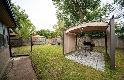 Outdoor space is also available, with a front patio boasting a swing perfect for enjoying warm evenings. The backyard features a gazebo, a BBQ area, and a fire pit, allowing for outdoor gatherings and cozy nights by the fire. Unique details of this rental include complimentary High speed internet and access to your favorite streaming services. Pets are negotiability, ensuring that your four-legged companion can join you on your trip. For those looking to stay active, Planet Fitness is only a 5-minute drive from the property.